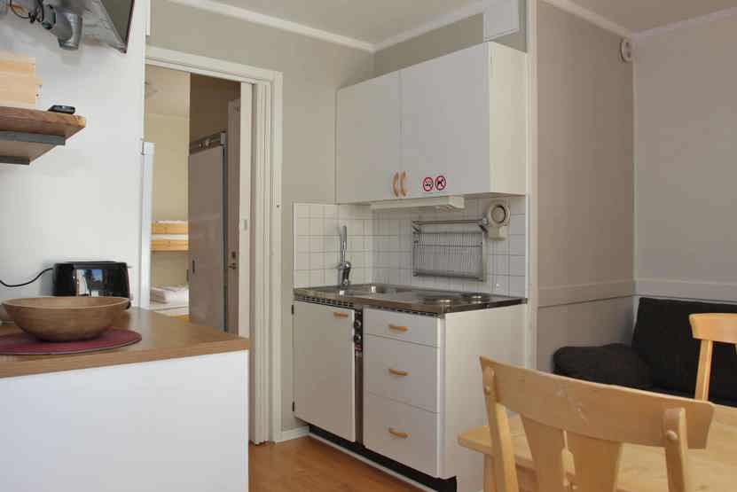Køkkenet indeholder pentrykök med 2 spisplattor, ovn, køleskab, fryser, mikro.