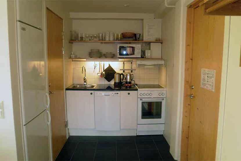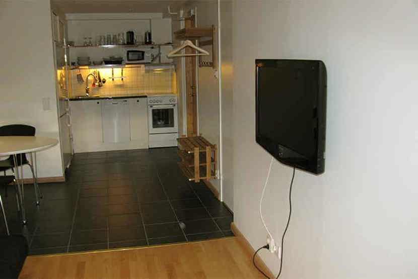 Stue med køkkenafdeling.