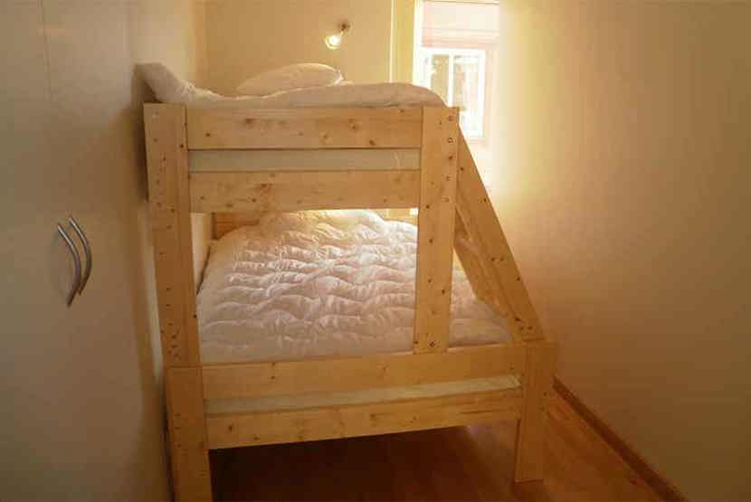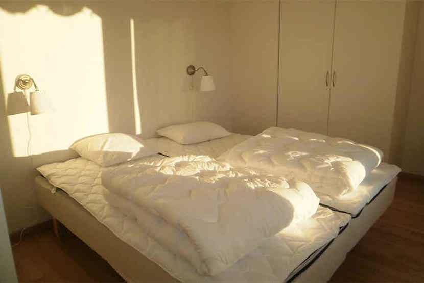 Soveværelse-1 = 1 dobbeltseng. Soveværelse-2 = 1 køjeseng med 120 cm bred underkøje.