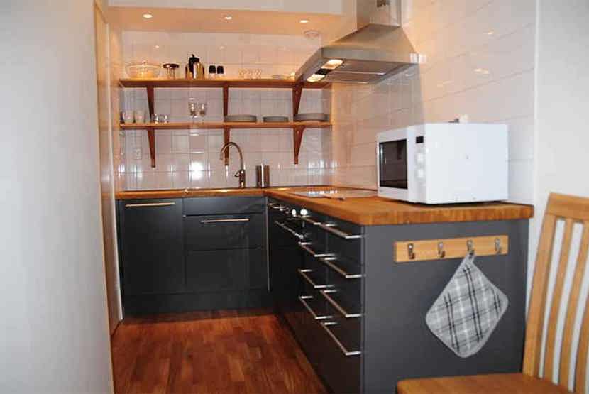 Stue med køkkenafdeling.
