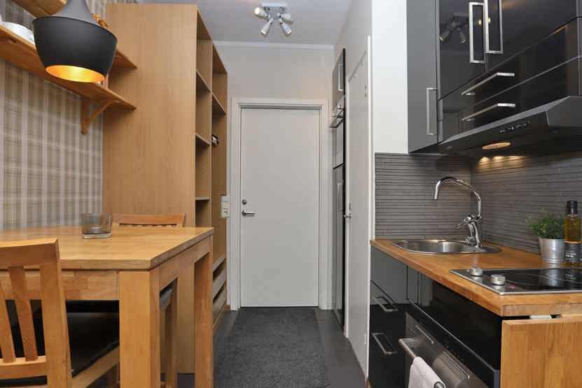 Stue med køkkenkrog, 1 enkeltsenge (pullman), sovesofa 140 cm bred.
