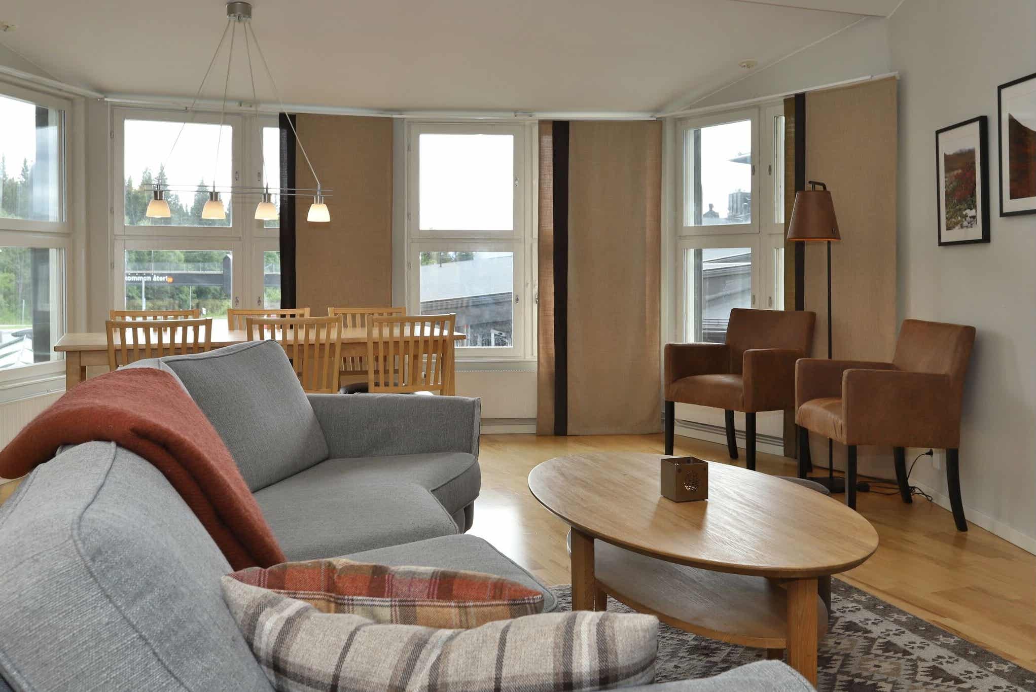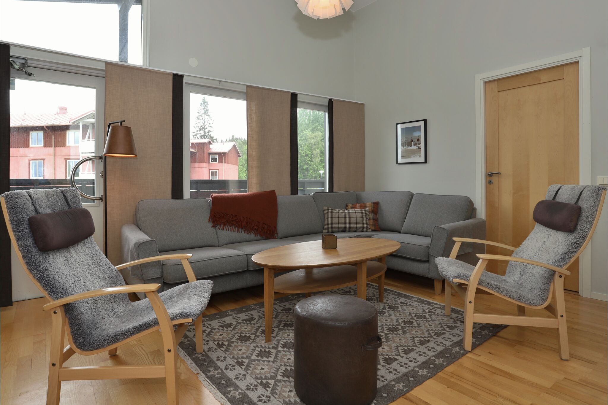 Pæne og moderne indrettede lejligheder beliggende i centrumhuset i Björnens by. Pistesystem, aktiviteter, børnelifter, SkiStarshop og supermarked findes direkte uden for døren. Her indgår fuldt udstyret køkken til egen madlavning, tørreskab og opvaskemaskine. Skibussen til Åre går regelmæssigt fra torvet nedenfor.