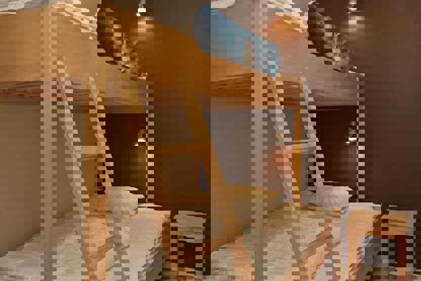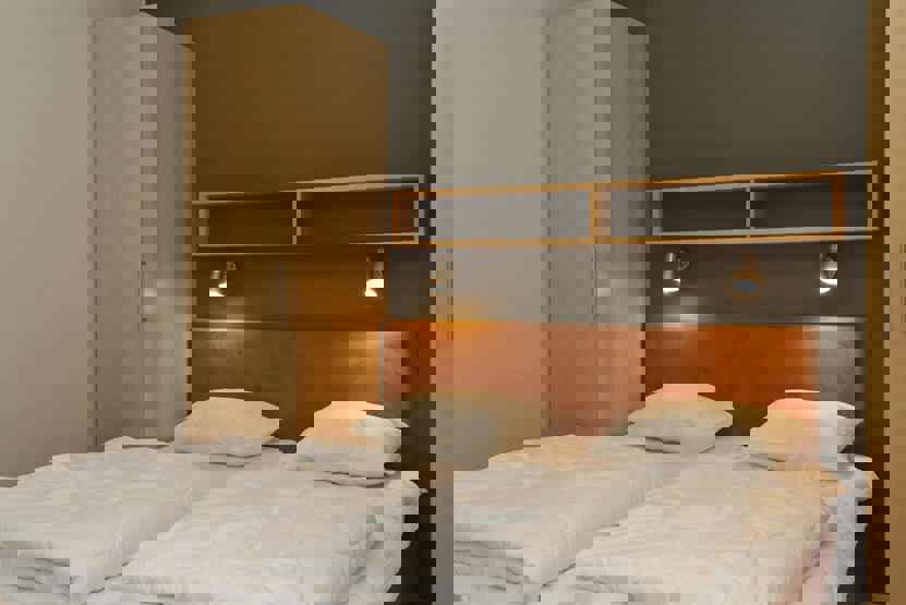 Soveværelse-1 = 1 dobbeltseng. Soveværelse-2 = 1 køjeseng med 120 cm bred underkøje, I værelse uden vindue. Soveværelse-3 = 1 køjeseng med 120 cm bred underkøje.