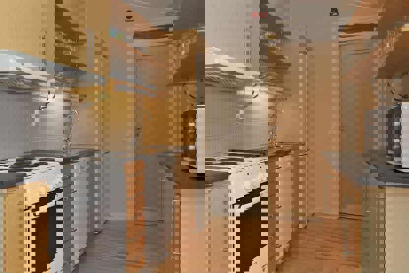 Køkkenet indeholder elkomfur med ovn, køleskab med fryser, opvaskemaskine, mikro.