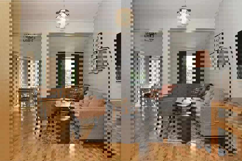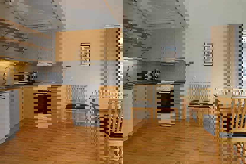 Stue med køkkenafdeling.