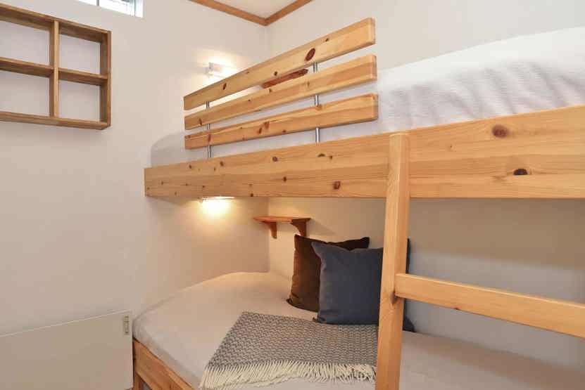 Soveværelse-1 = 2 enkeltsenge. Soveværelse-2 = 1 køjeseng med 90 cm bred underkøje og 80 cm bred overkøje. Soveværelse-3 = 1 køjeseng med 90 cm bred underkøje og 80 cm bred overkøje.