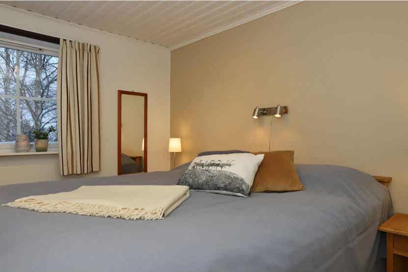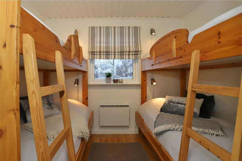 Soveværelse-1 = 1 dobbeltseng 180 cm bred. Soveværelse-2 = 2 køjesenger med 90 cm bred underkøje og 80 cm bred overkøje.