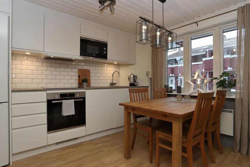 Stue med køkkenafdeling.