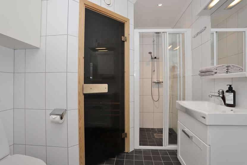 Badeværelse 1 = bruser/WC/sauna.