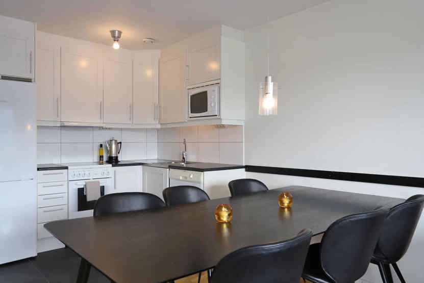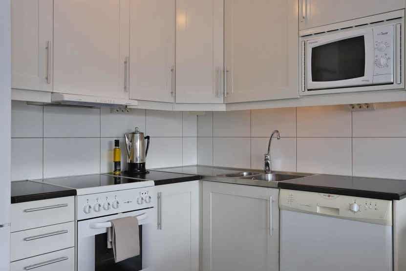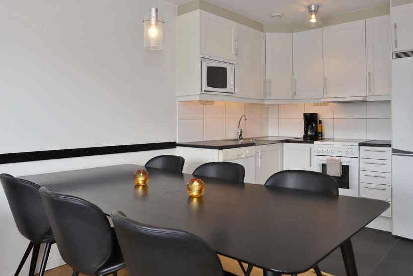 Køkkenet indeholder elkomfur med ovn, køleskab med fryser, opvaskemaskine, mikro.