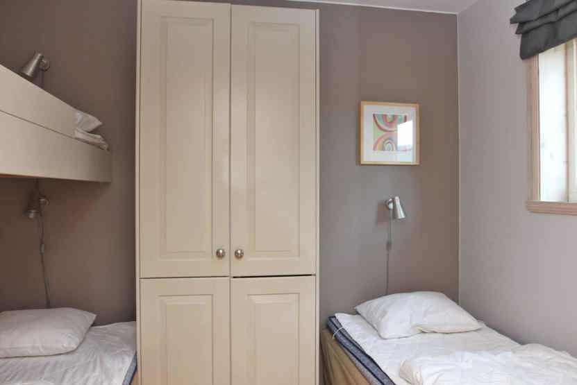 Soveværelse-1 = 1 dobbeltseng. Soveværelse-2 = En 80 cm bred enkeltseng samt en 105 cm bred enkeltseng med en 80 cm bred vægseng ovenpå.