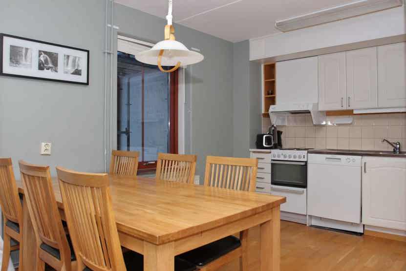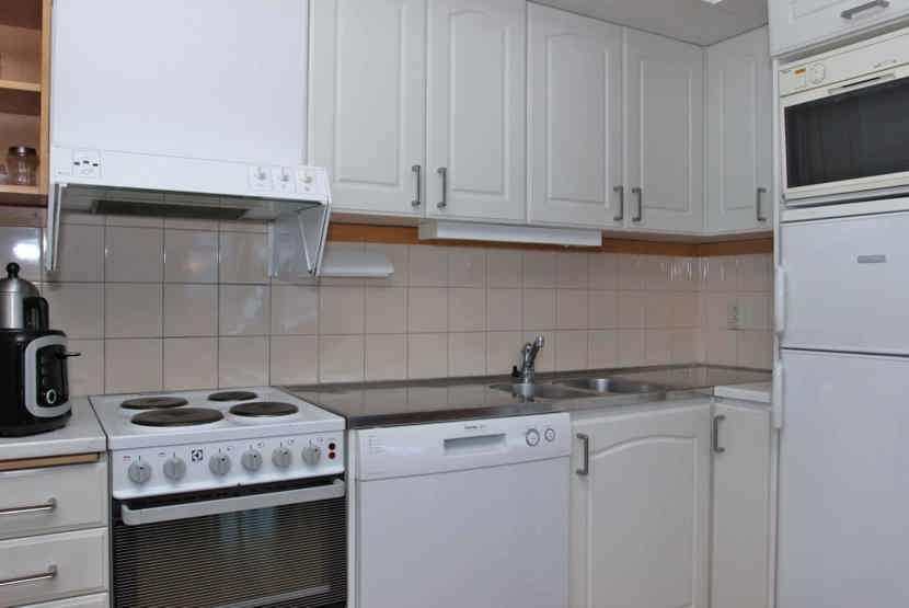 Køkkenet indeholder elkomfur med ovn, køleskab med fryser, mikro, opvaskemaskine.