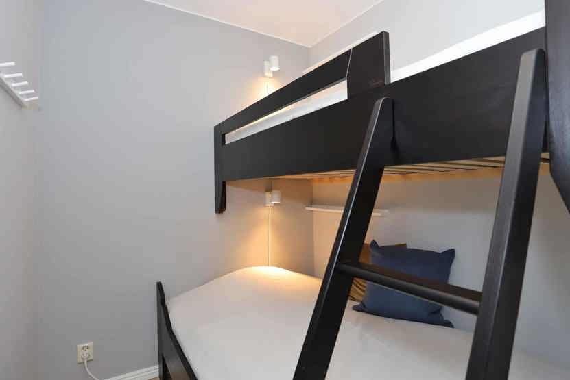 Soveværelse-1 = 1 køjeseng, soveværelse uden vinduer. Soveværelse-2 = 1 køjeseng med bred underkøje, soveværelse uden vinduer. Soveværelse-3 = 1 køjeseng med bred underkøje.