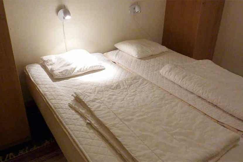 Soveværelse-1 = 2 enkeltsenge, soveværelse uden vinduer. Soveværelse-2 = 1 køjeseng, soveværelse uden vinduer.