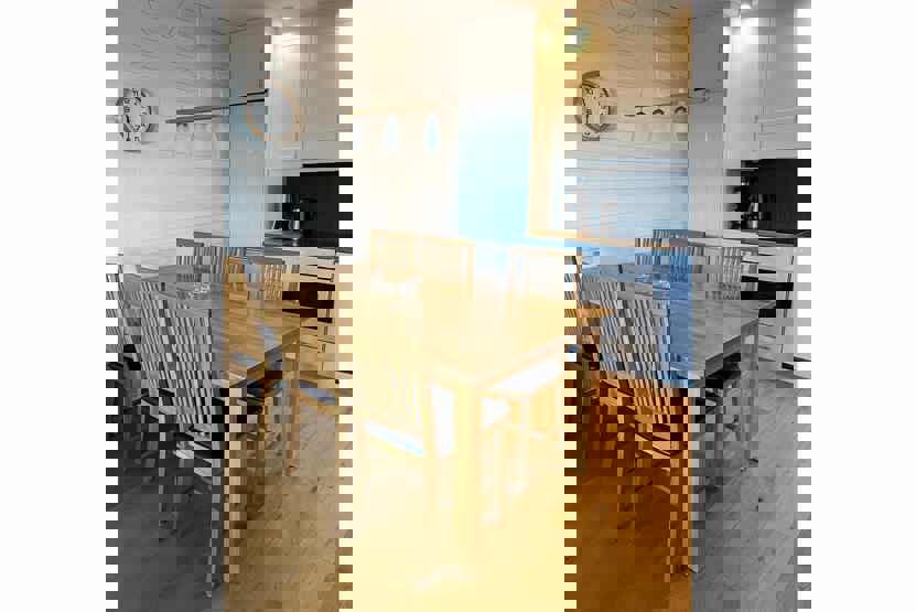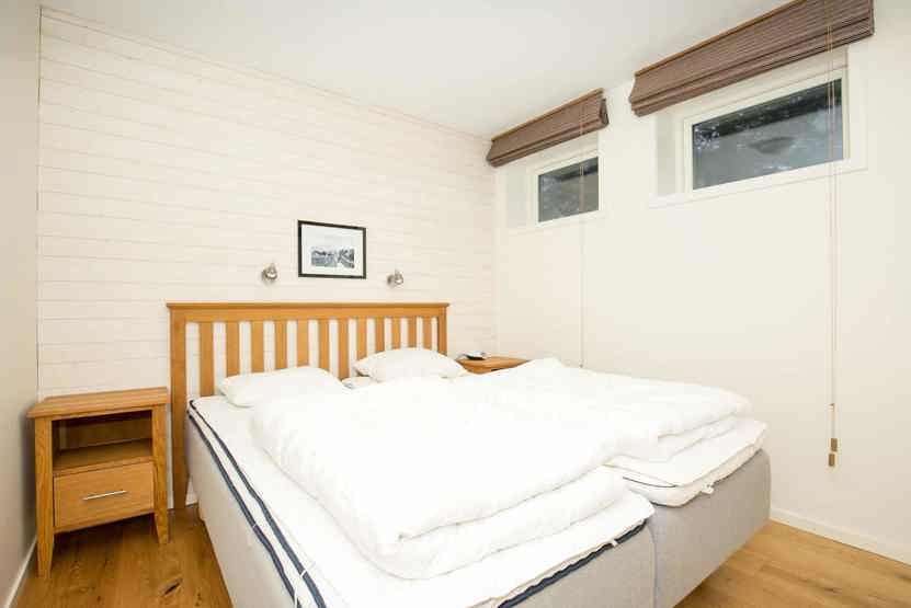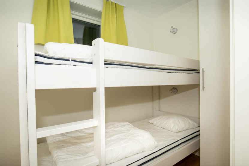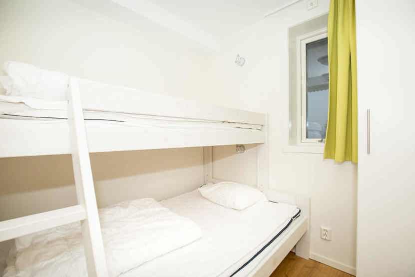 Soveværelse-1 = 1 dobbeltseng 180 cm bred. Soveværelse-2 = 1 køyeseng med 120 cm bred underkøye og 80 cm bred overkøye. Soveværelse-3 = 1 køjeseng hvor både over og underkøje er 90 cm bred.