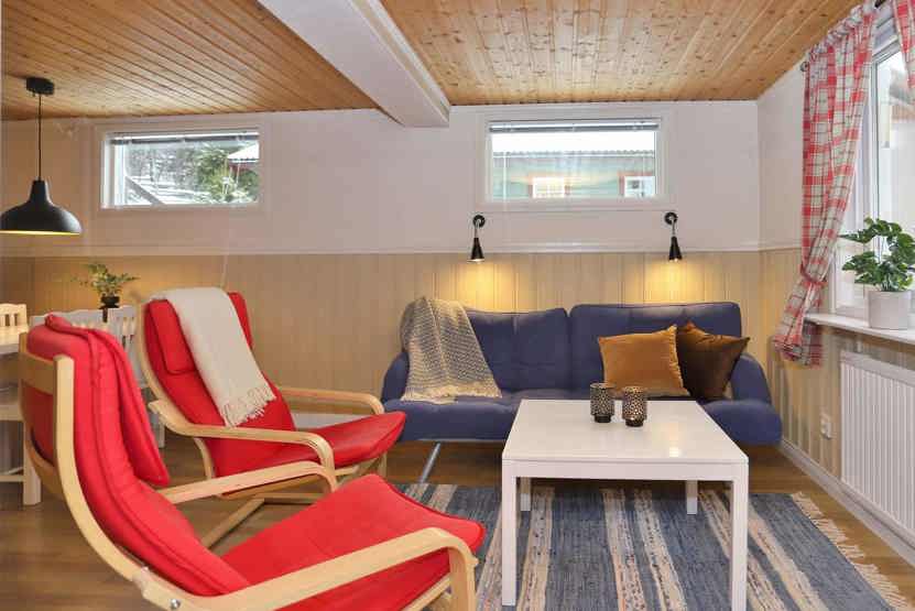 Stue med køkkenafdeling.