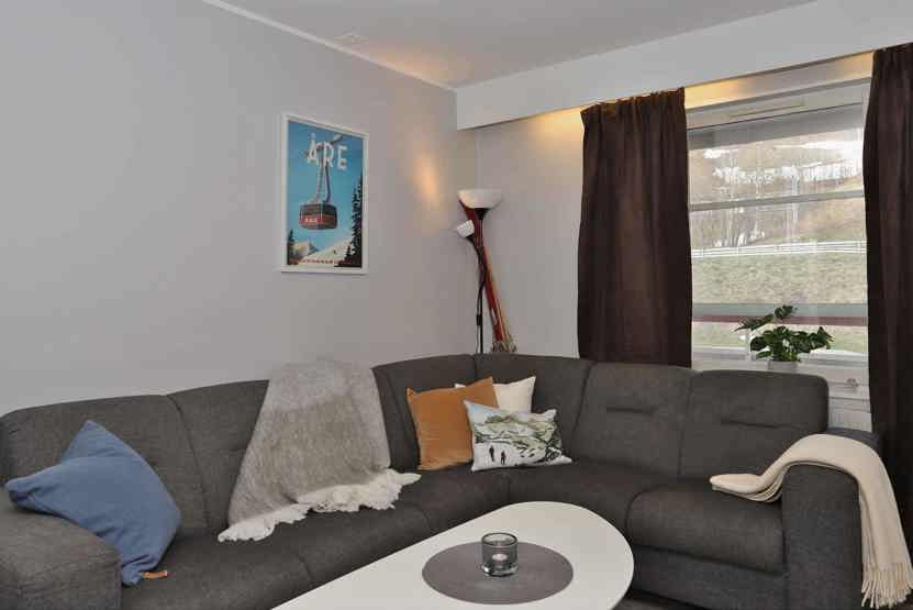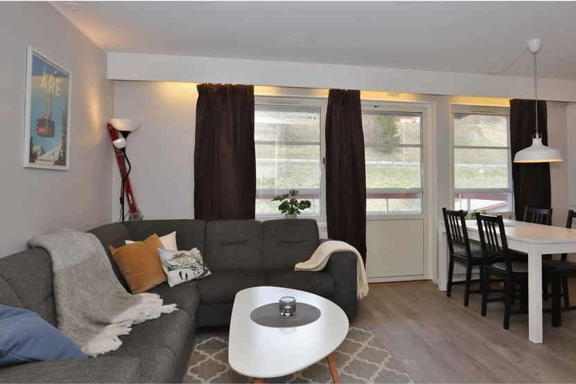 Mitt i Åre ligger i Åre By. Lejlighed på 1 etage, Mod nord, 6 sengepladser, 42 kvm, alrum med køkkenafdeling, 2 soveværelse, 1 bruser, 1 WC, sauna.