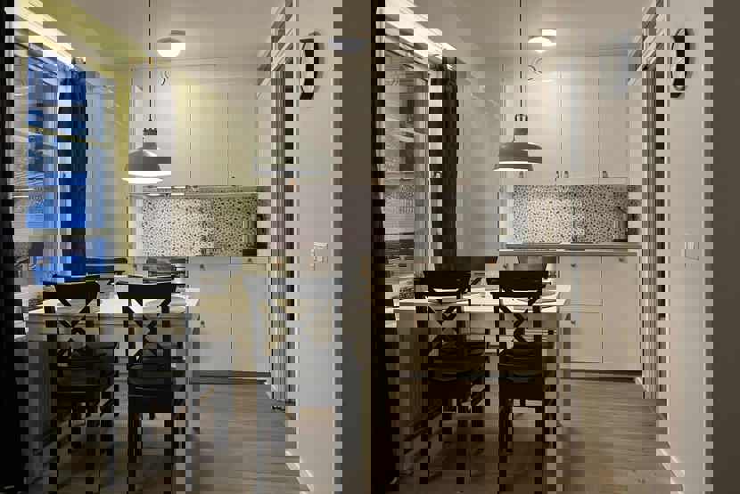 Stue med køkkenafdeling.
