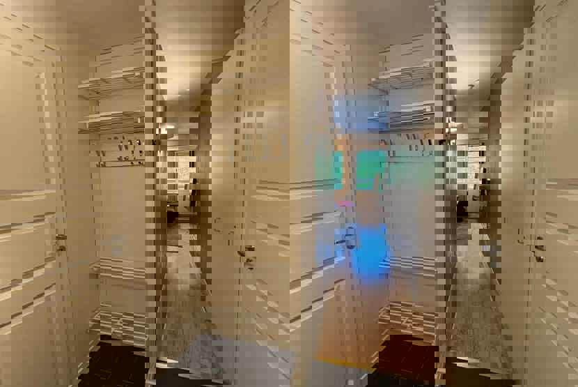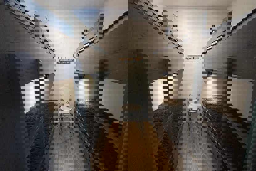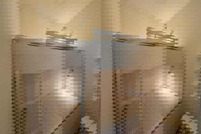 Soveværelse-1 = 2 køjesenge, soveværelse uden vinduer. Soveværelse-2 = 1 køjeseng, soveværelse uden vinduer.