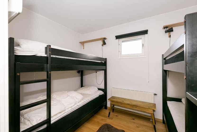 Soveværelse-1 = 1 enkeltseng 140 cm bred, soveværelse uden vinduer. Soveværelse-2 = 2 køjesenge.