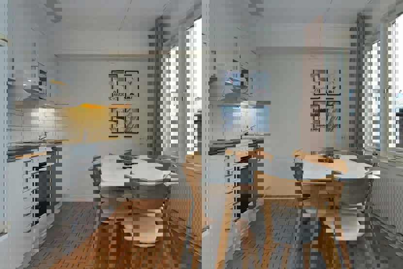 Køkkenet indeholder elkomfur med ovn, køleskab med fryser, opvaskemaskine, mikro.