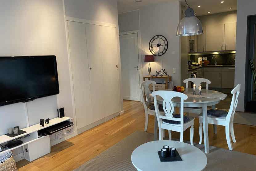 TV, tørreskab, aflåseligt skiopbevaring (vintertid), parkeringsplads mangler.