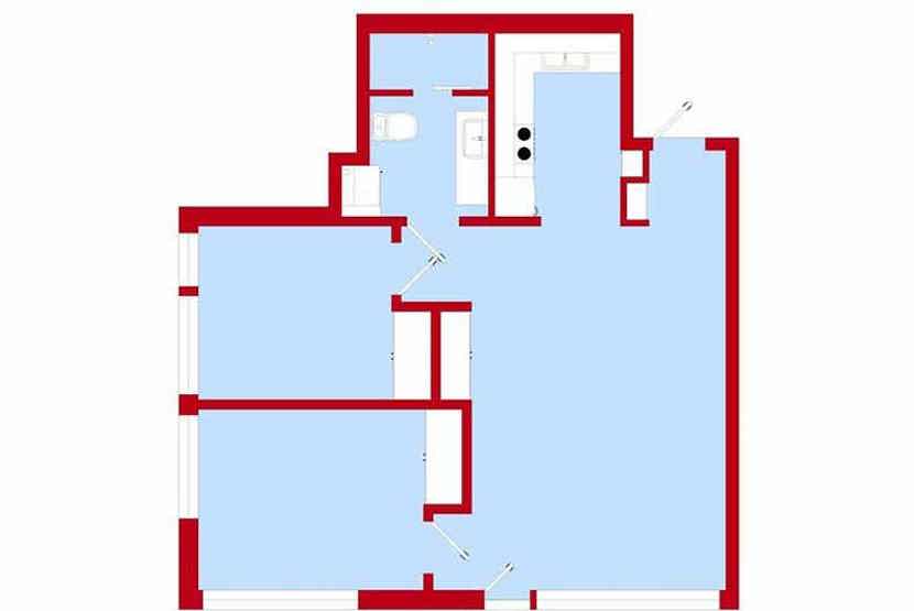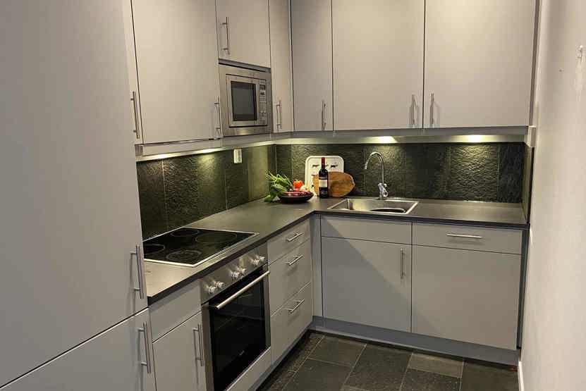 Stue med køkkenafdeling.