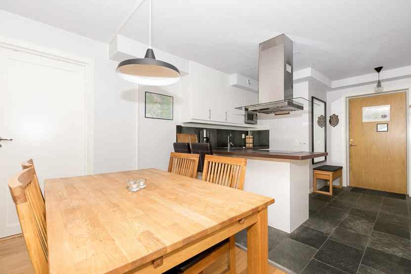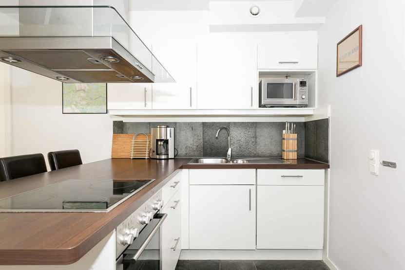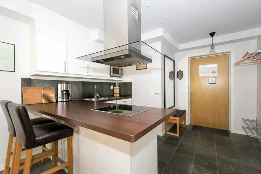 Køkkenet indeholder elkomfur med ovn, køleskab med fryser, opvaskemaskine, mikro.