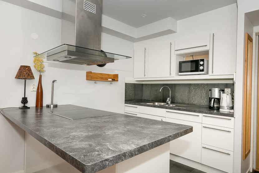 Stue med køkkenafdeling.