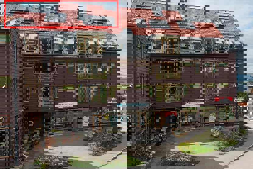 TV, balkon mod øst, tørreskab, håndklædetørrer, aflåseligt skiopbevaring (vintertid), parkeringsplads mangler.