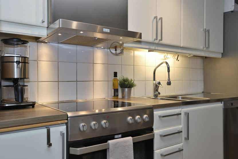 Køkkenet indeholder elkomfur med ovn, køleskab med fryser, opvaskemaskine, mikro.