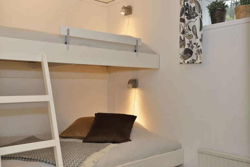 Soveværelse-1 = 1 dobbeltseng. Soveværelse-2 = 1 køjeseng med 120 cm bred underkøje. Soveværelse-3 = 1 køjeseng med 120 cm bred underkøje.