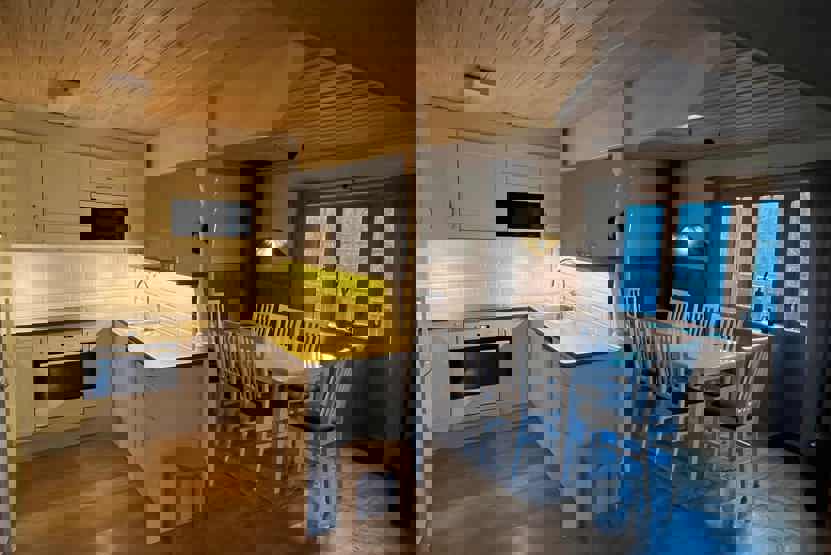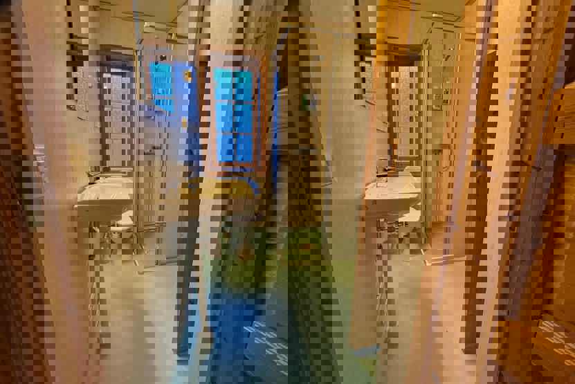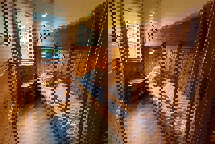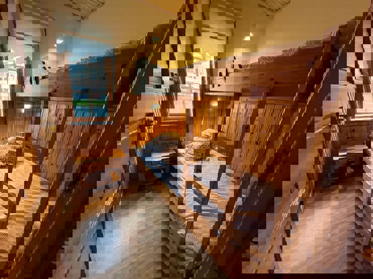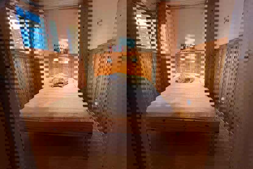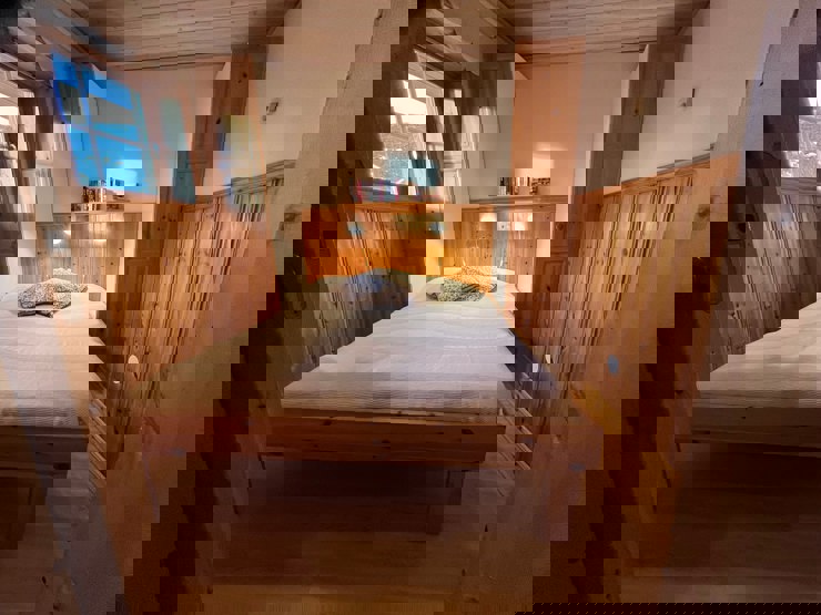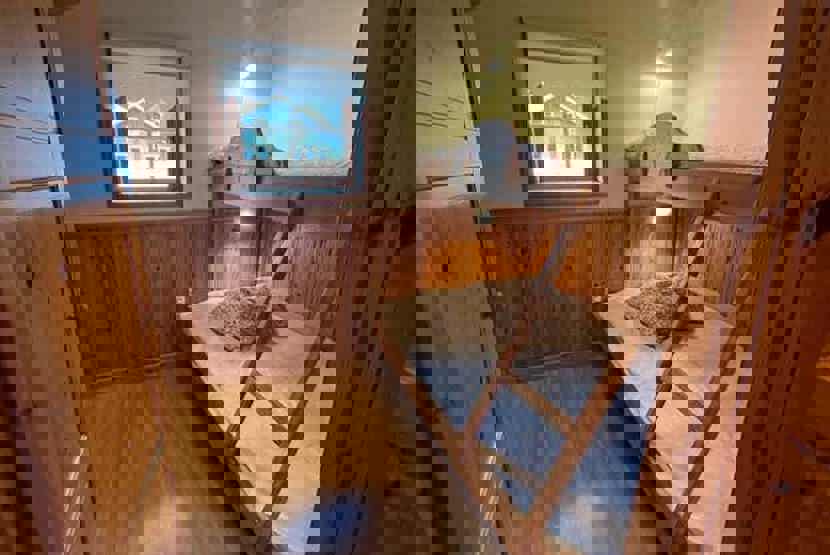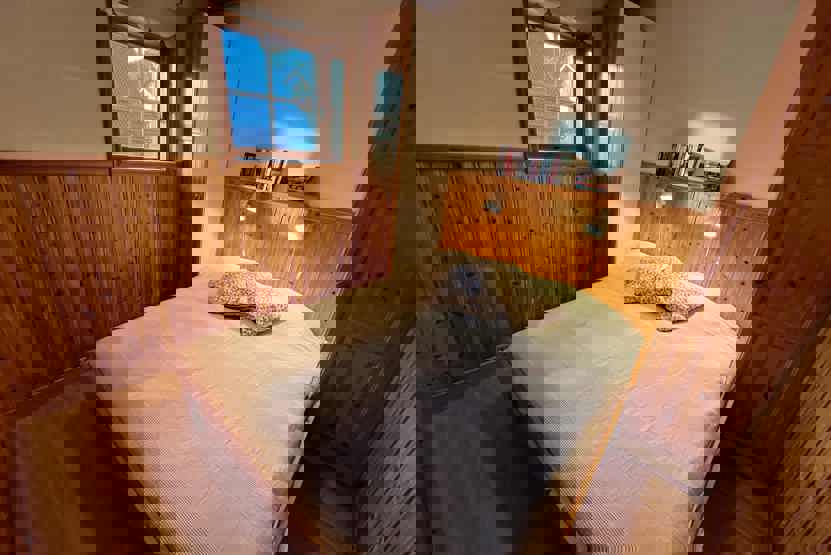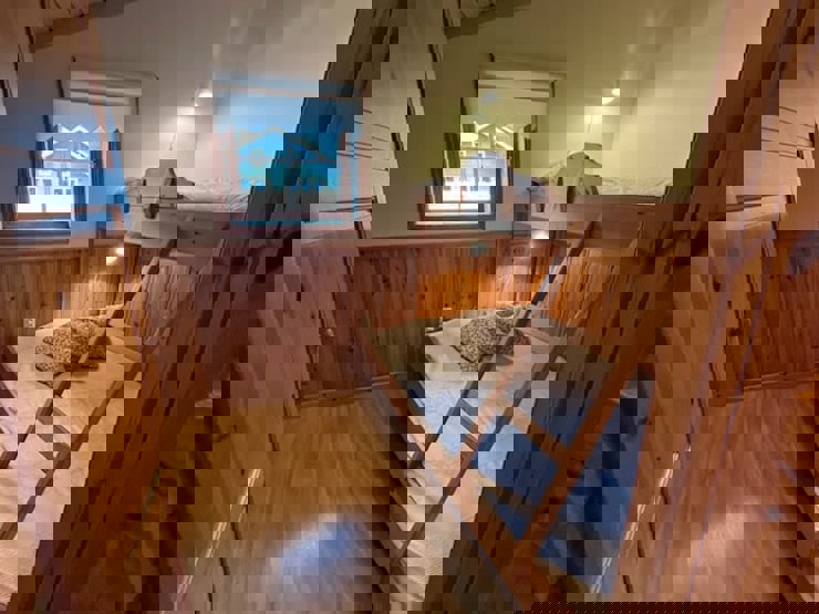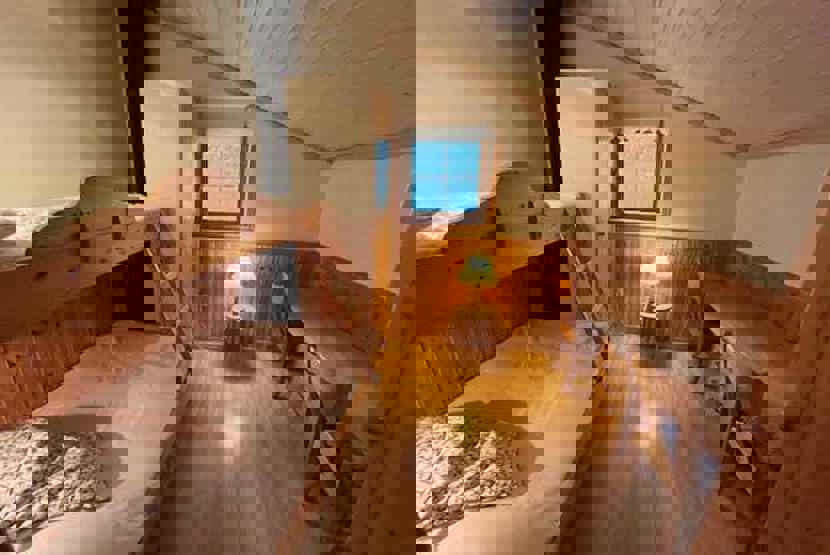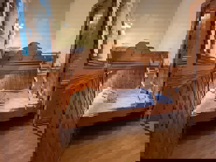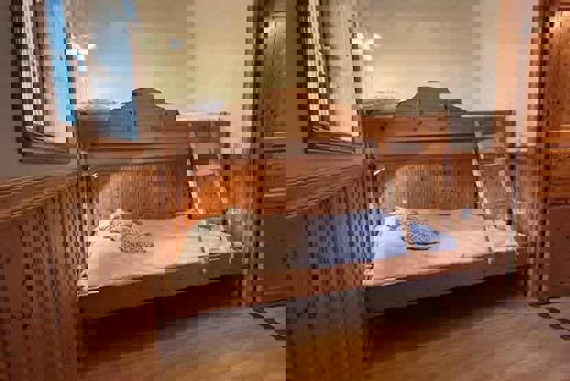 Soveværelse-1 = 1 dobbeltseng 160 cm bred. Soveværelse-2 = 1 køyeseng med 120 cm bred underkøye og 80 cm bred overkøye. Soveværelse-3 = 1 køyeseng med 120 cm bred underkøye og 80 cm bred overkøye. Soveværelse-4 = 1 køjeseng hvor både over og underkøje er 80 cm bred.