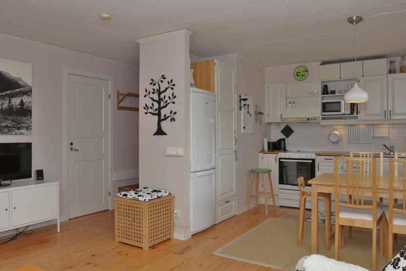Hermelinen ligger i Åre Björnen. Lejlighed på første etage, 1+1 sengepladser, 43 kvm, alrum med køkkenafdeling, 1 soveværelse, 1 bruser, 1 WC, sauna.