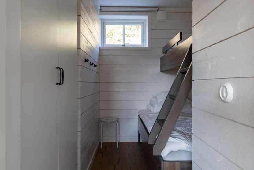Soveværelse-1 = 1 dobbeltseng. Soveværelse-2 = 1 køjeseng med 120 cm bred underkøje og 80 cm bred overkøje.