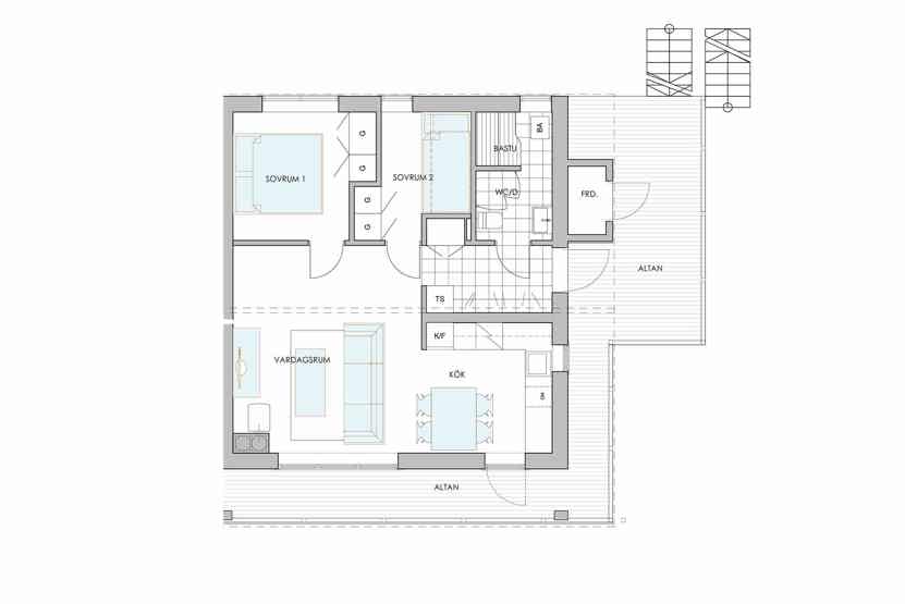 Nedre Vikvägen ligger i Åre Björnen. Lejlighed i stueetage, 4+1 sengepladser, 60 kvm, alrum med køkkenafdeling, 2 soveværelse, 1 bruser, 1 WC, sauna.