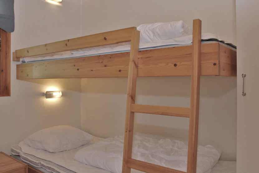 Soveværelse-1 = 1 dobbeltseng. Soveværelse-2 = 1 køjeseng med 90 cm bred underkøje og 80 cm bred overkøje. Soveværelse-3 = 1 køjeseng med 90 cm bred underkøje og 80 cm bred overkøje.