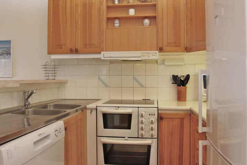 Køkkenet indeholder elkomfur med ovn, køleskab med fryser, opvaskemaskine, mikro.