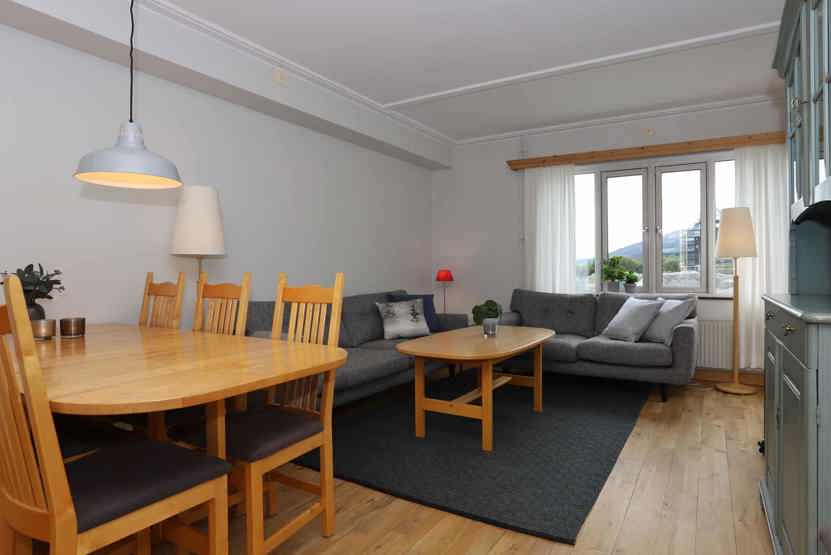Stue med køkkenafdeling.