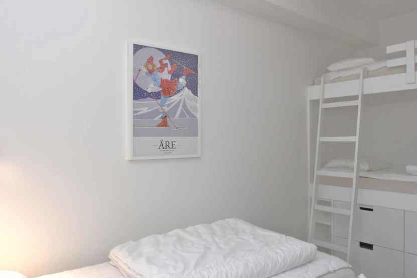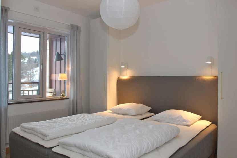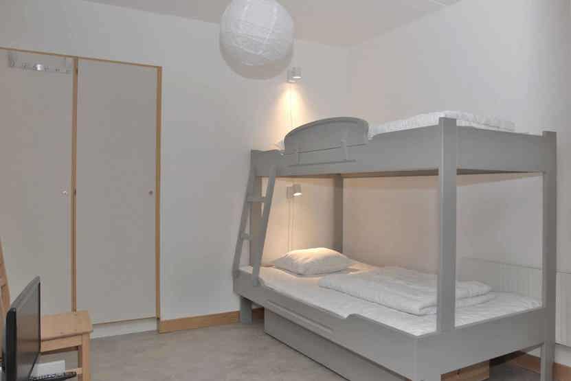 Soveværelse-1 = 1 dobbeltseng. Soveværelse-2 = 1 køjeseng med 120 cm bred underkøje. Soveværelse-3 = 1 køjeseng, 1 enkeltseng.