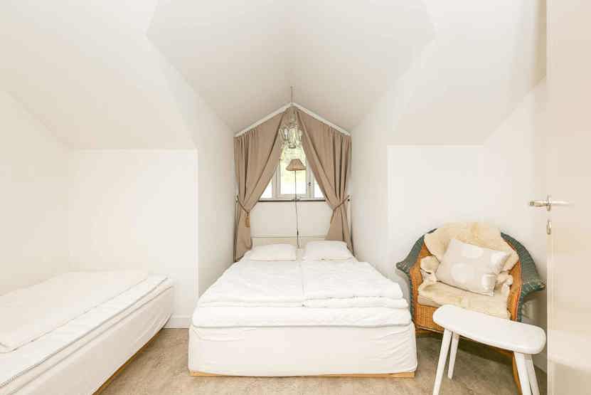 Soveværelse-1 = 1 enkeltsenge 90 cm bred, 1 enkeltseng 140 cm bred.