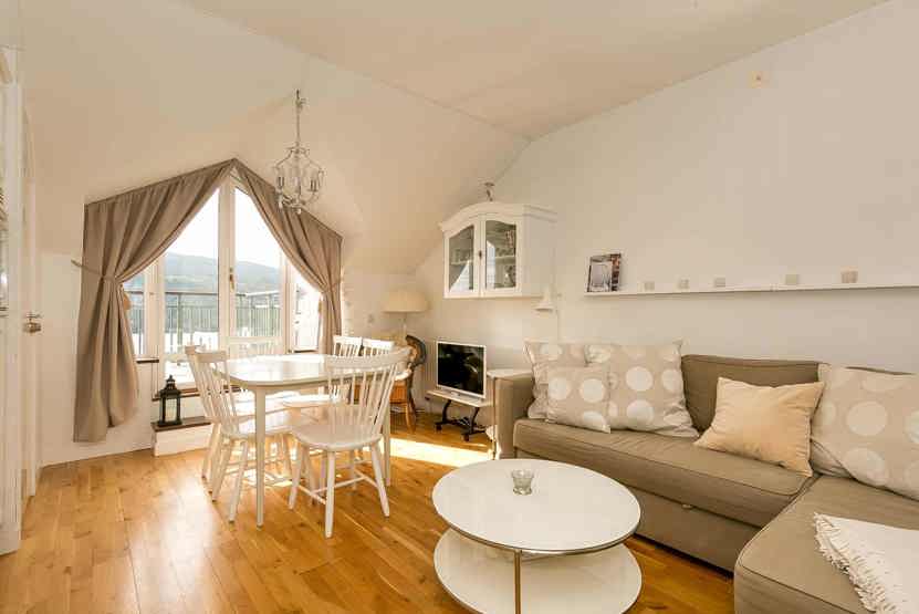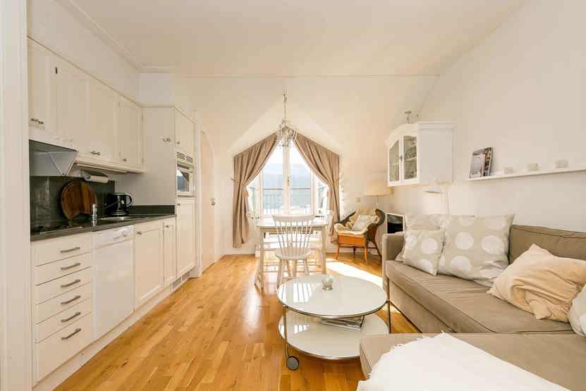 Stue med køkkenafdeling, sovesofa til 1 person.