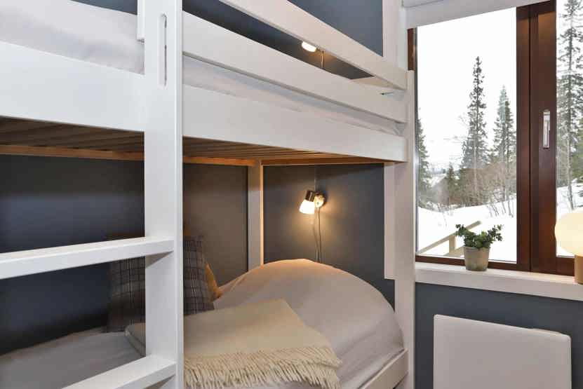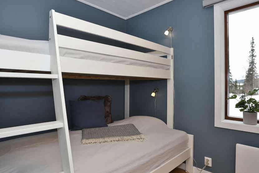 Soveværelse-1 = 1 dobbeltseng 150 cm bred. Soveværelse-2 = 1 køjeseng. Soveværelse-3 = 1 køjeseng med 120 cm bred underkøje. Soveværelse-4 = 1 køjeseng.