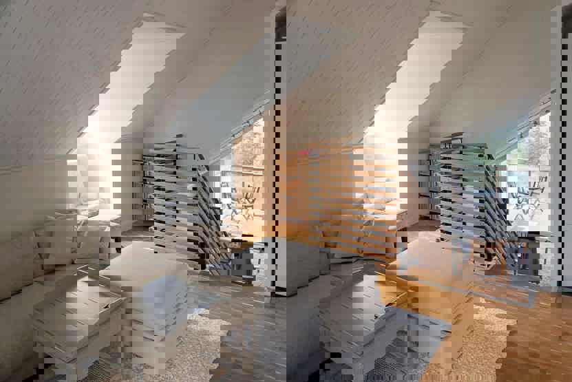 Soveværelse-1 = 1 dobbeltseng 160 cm bred. Soveværelse-2 = 1 køyeseng med 120 cm bred underkøye og 80 cm bred overkøye. Soveværelse-3 = 1 køjeseng med 160 cm bred underkøje og 80 cm bred overkøje.