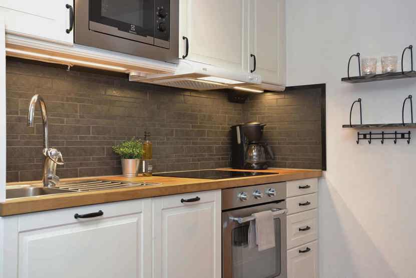 Stue med køkkenafdeling.