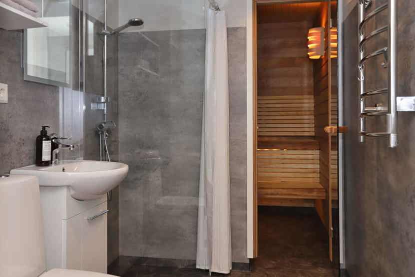 Badeværelse 1 = bruser/WC/sauna.