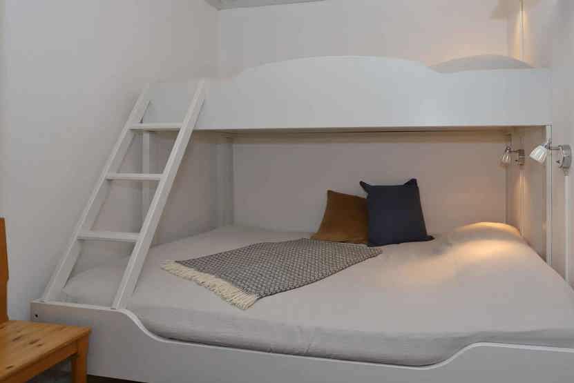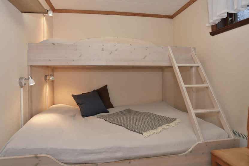 Soveværelse-1 = 1 køjeseng med 150 cm bred underkøje. Soveværelse-2 = 1 køjeseng med 150 cm bred underkøje, soveværelse uden vinduer.