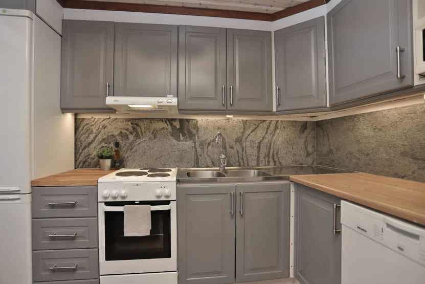 Køkkenet indeholder elkomfur med ovn, køleskab med fryser, opvaskemaskine, mikro.