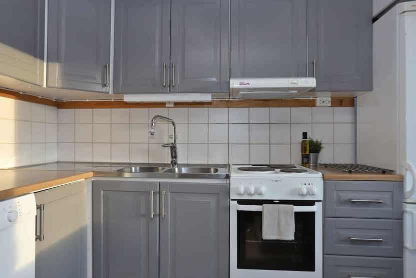 Køkkenet indeholder elkomfur med ovn, køleskab med fryser, opvaskemaskine, mikro.