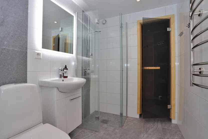 Östlibacken ligger i Åre By. Lejlighed på første etage, I to etage, 6 sengepladser, 68 kvm, alrum med køkkenafdeling, 3 soveværelse, 1 bruser, 1 WC, sauna.